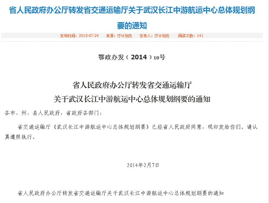 湖北省 抢抓国家“一带一路”和“长江经济带”战略机遇,贯彻落实省委、省政 府作出的“以武汉新港为依托,集中整合鄂东...