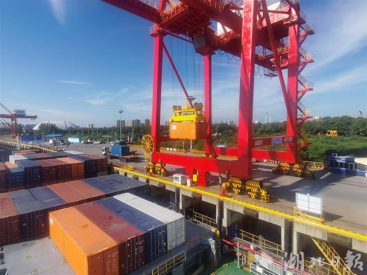 荆州市商务局自6月起多次与华中港航及大通国际协调推进首航筹备;荆州海关创新实施“提前申报-抵港直装”快速通关模式,辅以远程查验、批次检验等“智慧海关”手段,使通关效率提升50%以上,共同助推荆州“口岸 平台 产业”枢纽经济壮大成长。